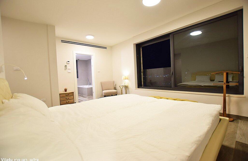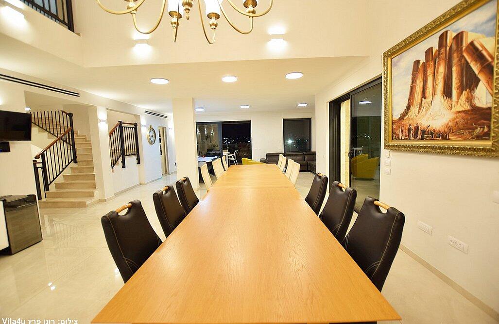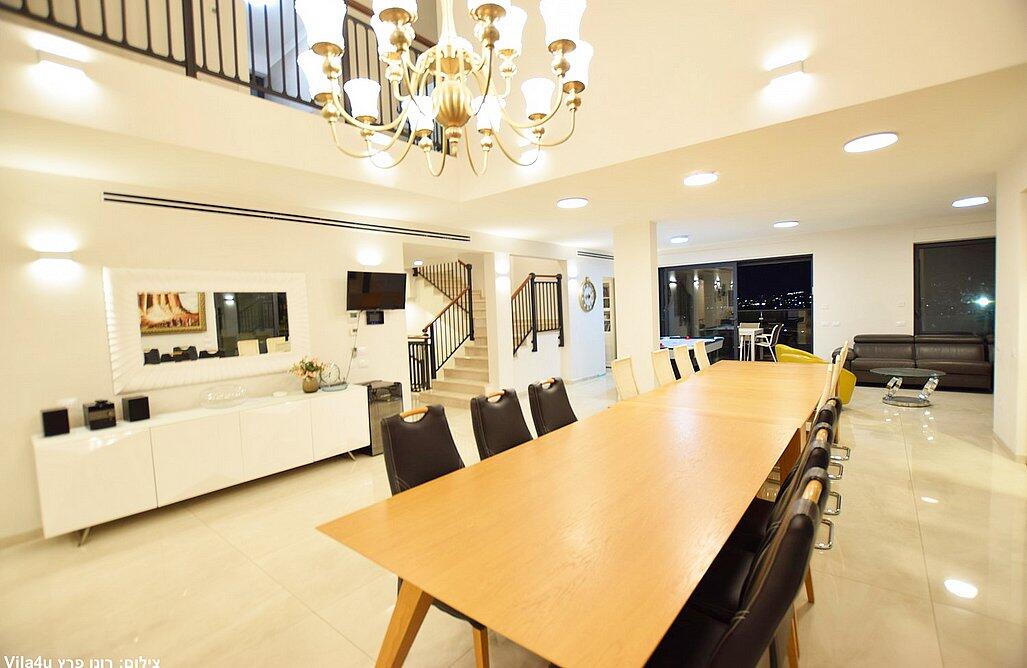 וילה נווה שמואל אינדיגו: 12 חדרים, 40 אורחים - חווית אירוח יוקרתית בהר שמואל. ברוכים הבאים לוילה המושלמת לחופשה ברמה הגבוהה ביותר, עם נוף עוצר נשימה להרי ירושלים! הוילה משתרעת על 350 מ"ר וכוללת 4 מפלסים. היא מציעה 12 חדרי אירוח מפוארים ויכולה לארח בנוחות עד 40 אורחים - אידיאלי למשפחות גדולות, קבוצות ואירועי שבתות חתן. לרשותכם סלון ענק, 2 מטבחים מאובזרים וחדר אוכל המתאים לעד 40 סועדים. בחוץ מחכה לכם מתחם פרטי ומפנק הכולל ג'קוזי ספא, בריכה, מרפסות עם נוף עוצר נשימה ומשחקי שולחן שיבטיחו בילוי מושלם לכולם. בקרו באתר שלנו לפרטים נוספים