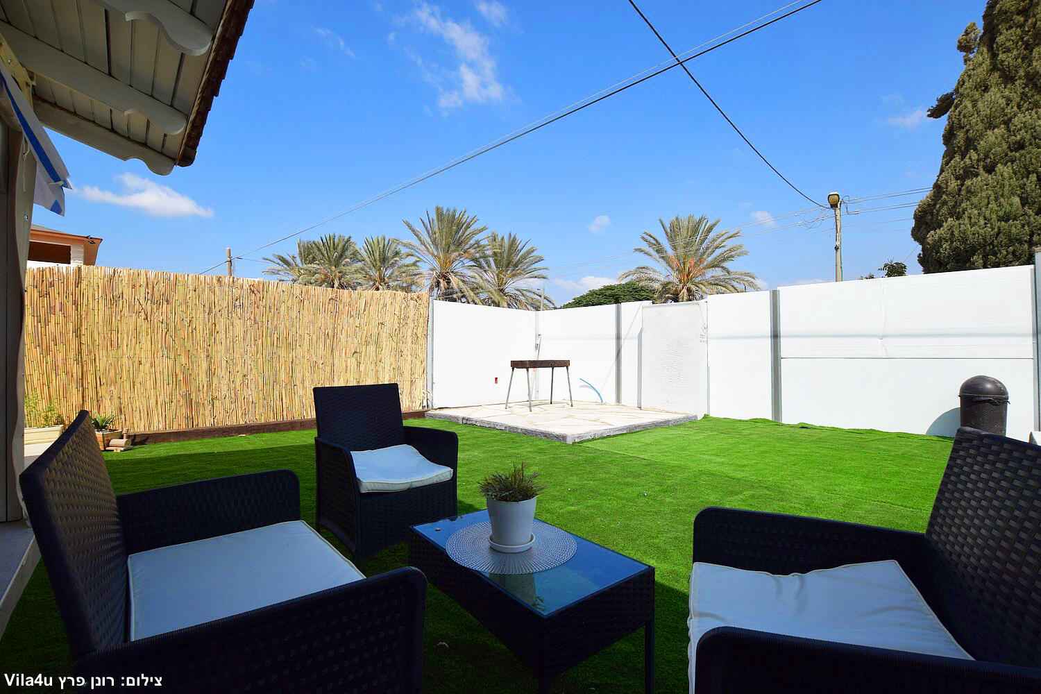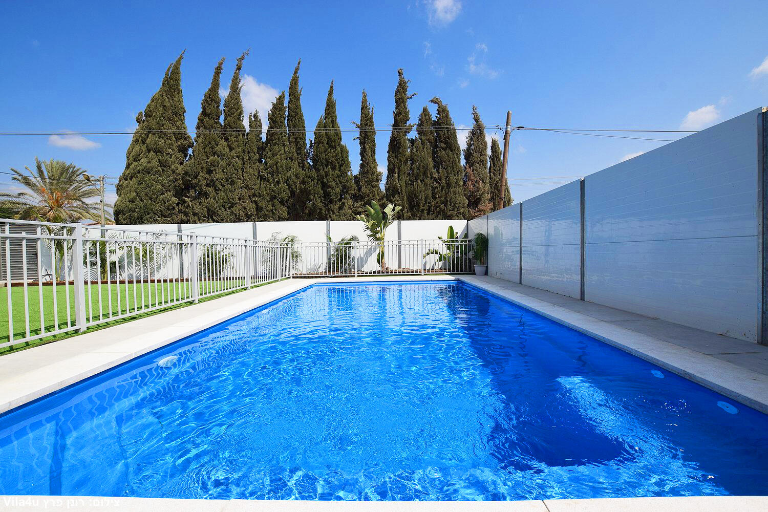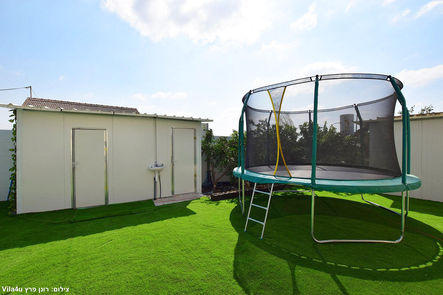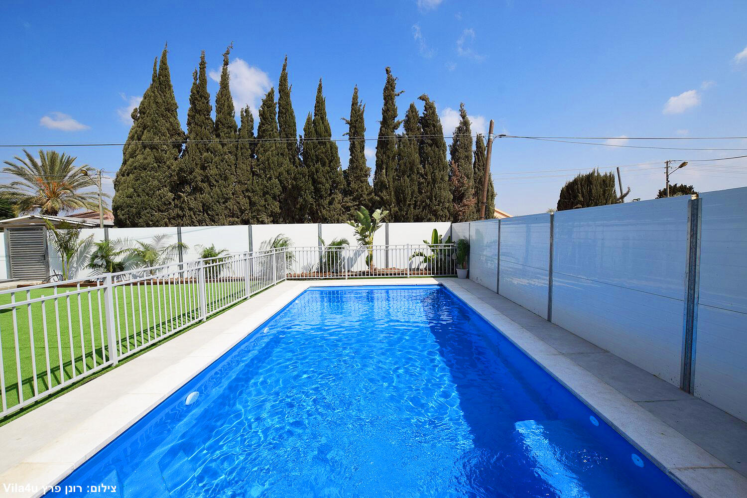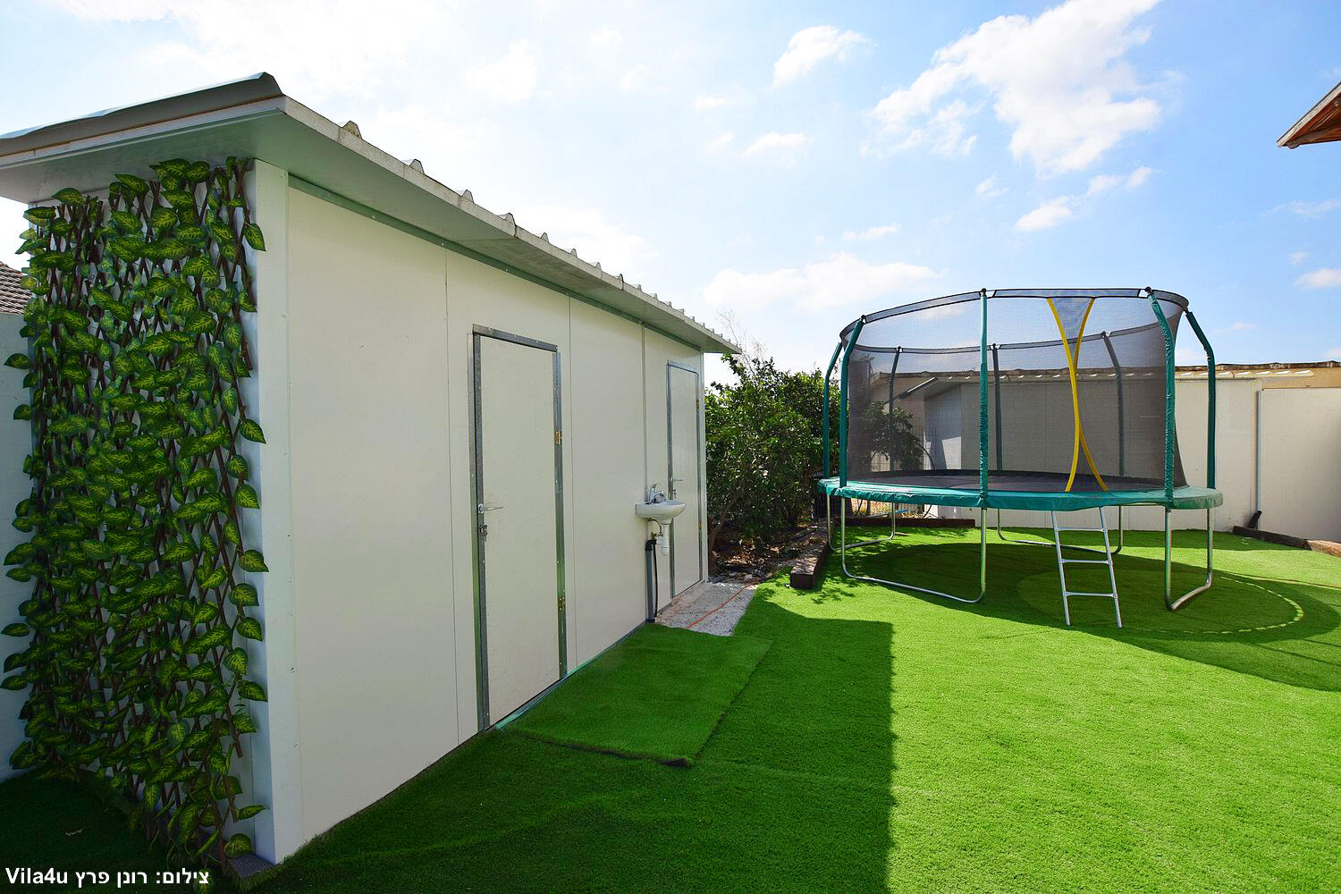 באחוזה 4 חדרי שינה מרווחים עם מיטות יהודיות ומיזוג בכל חדר, הסלון המואר כולל מסך LCD ופינת אוכל רחבה מושלם לארוחות משפחתיות משותפות, המטבח מצויד במלואו - מקרר, תנור, כיריים, מיקרוגל, מתקן מים לשבת וכלי הגשה, בחצר מחכה לכם בריכת שחייה גדולה, מדשאות ירוקות וטרמפולינה מהנה לילדים.