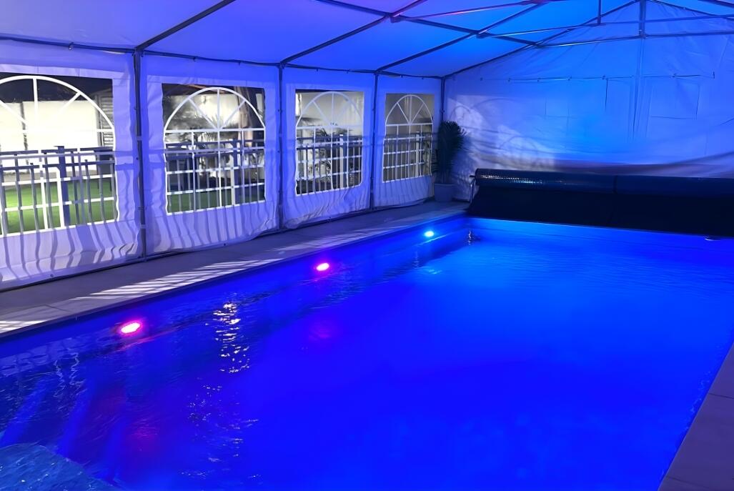 באחוזה 4 חדרי שינה מרווחים עם מיטות יהודיות ומיזוג בכל חדר, הסלון המואר כולל מסך LCD ופינת אוכל רחבה מושלם לארוחות משפחתיות משותפות, המטבח מצויד במלואו - מקרר, תנור, כיריים, מיקרוגל, מתקן מים לשבת וכלי הגשה, בחצר מחכה לכם בריכת שחייה גדולה מחוממת מקורה, מדשאות ירוקות וטרמפולינה מהנה לילדים.