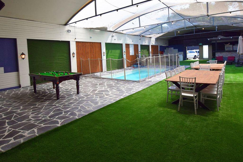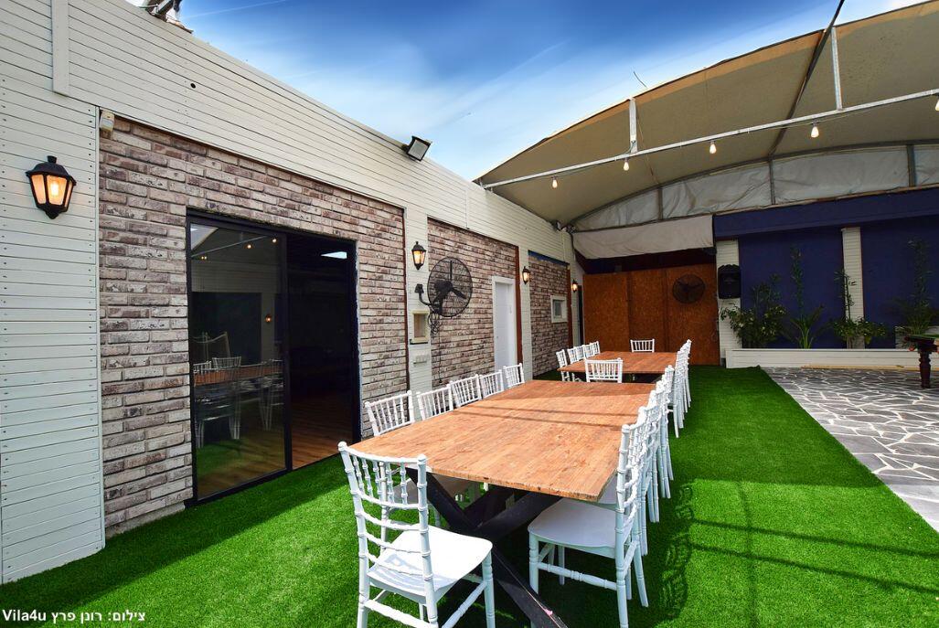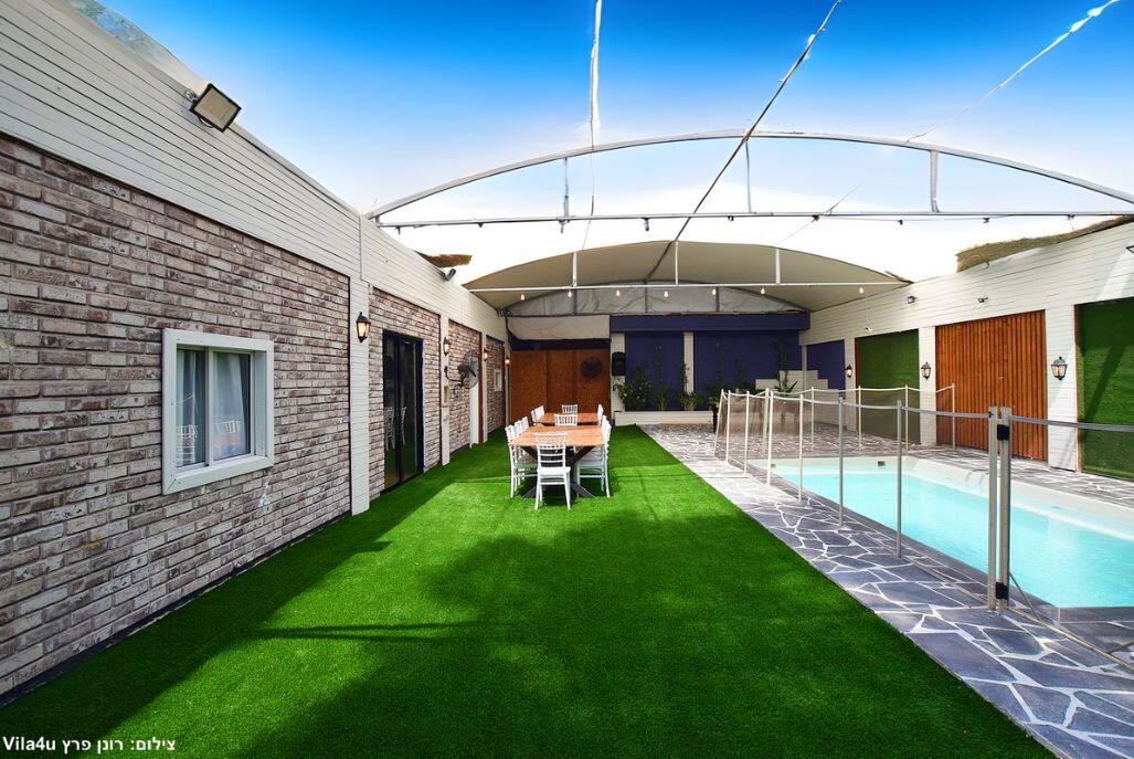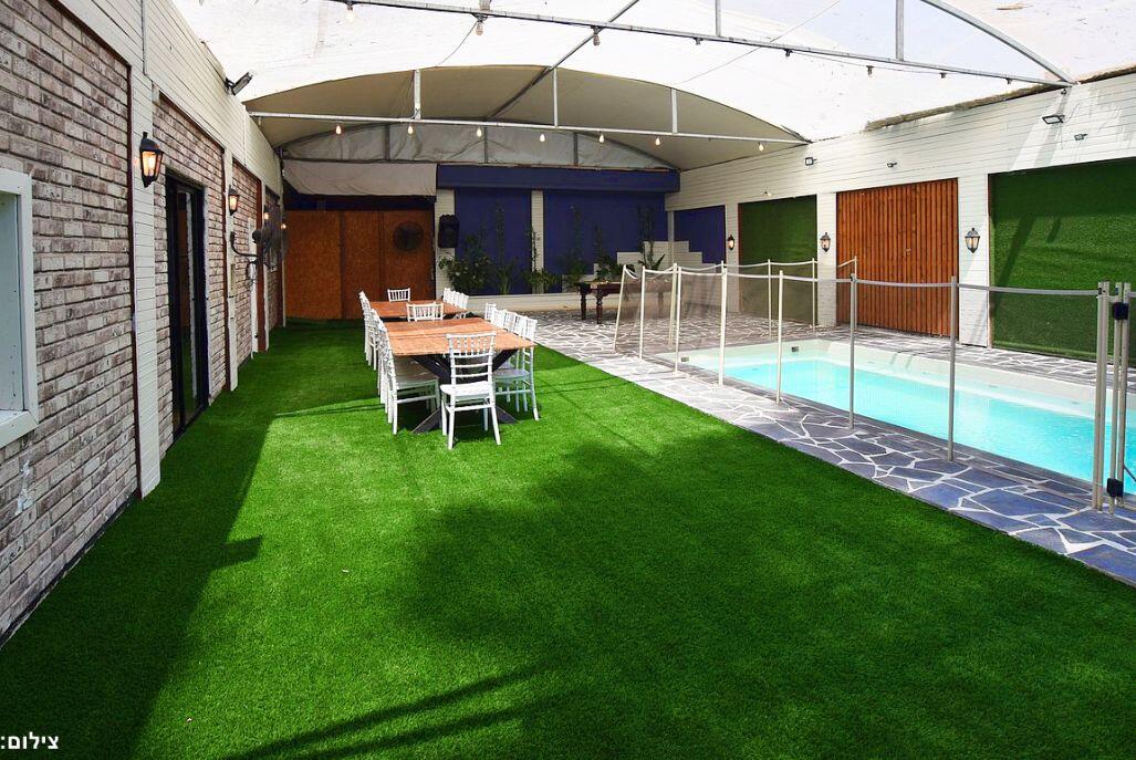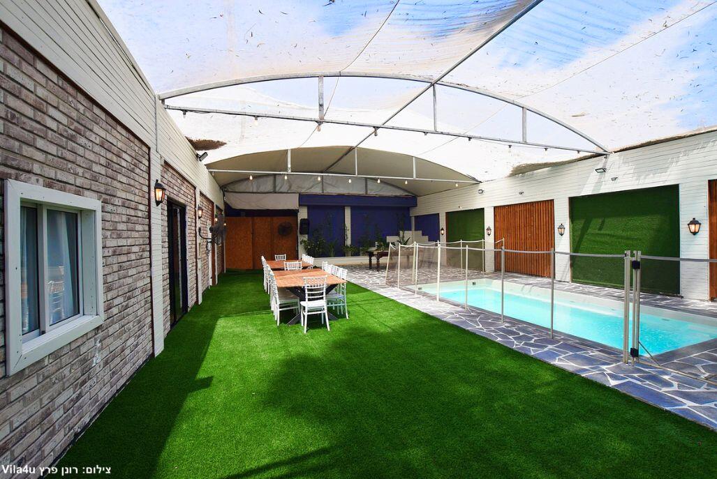 בחוץ מחכה לכם חוויה מפנקת הכוללת בריכת זרמים מחוממת ומקורה בחורף, ג'קוזי ספא מרענן, מערכת שמע איכותית, פינת מנגל מקצועית ופינות שיזוף מרגיעות. המתחם מושלם לאירועים ומסיבות של עד 100 משתתפים.