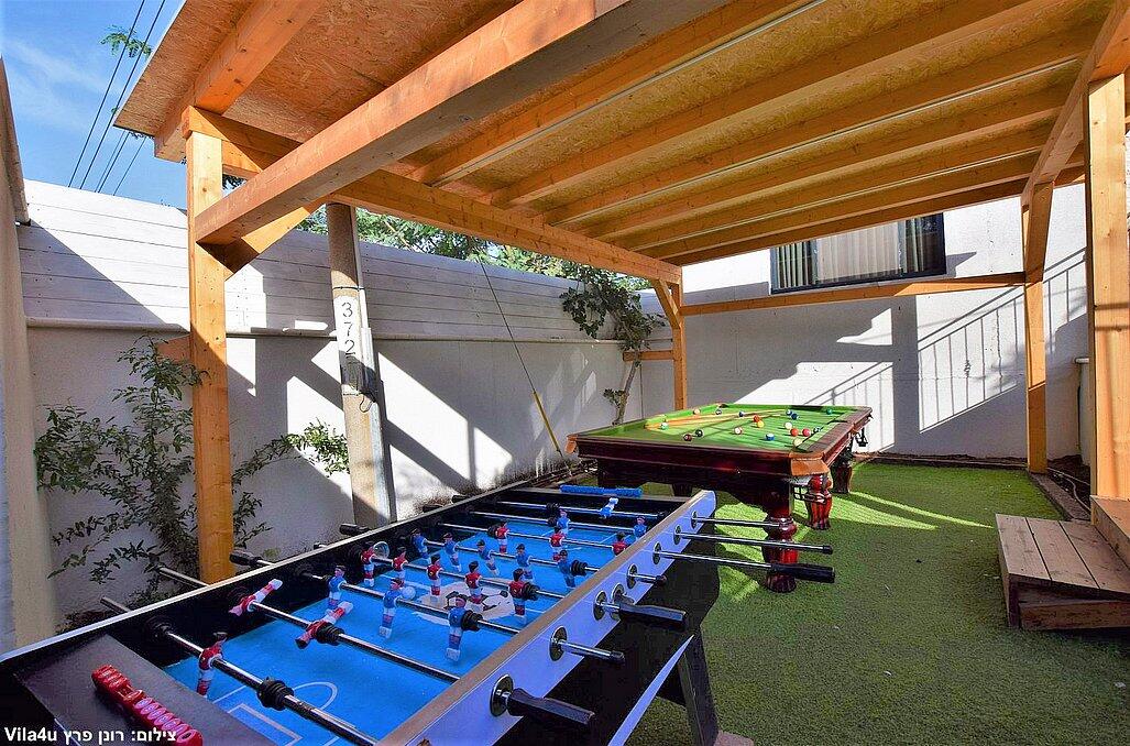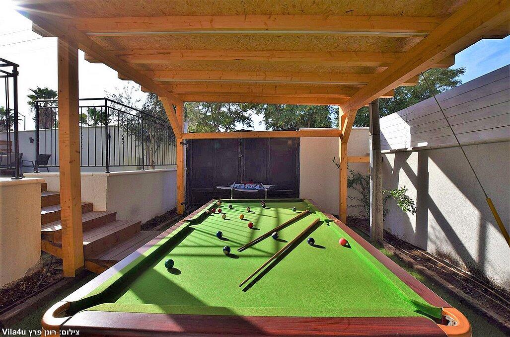 שינה מפנקים, וחצר קסומה המשלבת בריכת שחייה צלולה ומחוממת עם ג'קוזי מפנק. לנוחיות האורחים, החצר מאובזרת במגוון פינות ישיבה ומיטות שיזוף, מטבח חיצוני מקצועי, מתקני משחקים לילדים ושולחן פינג פונג.