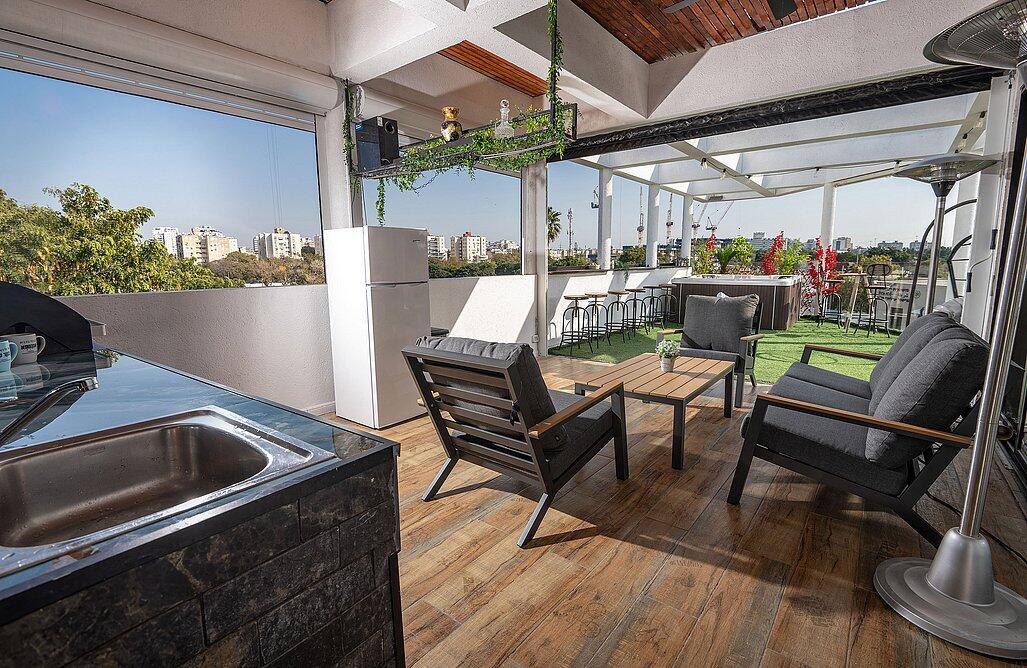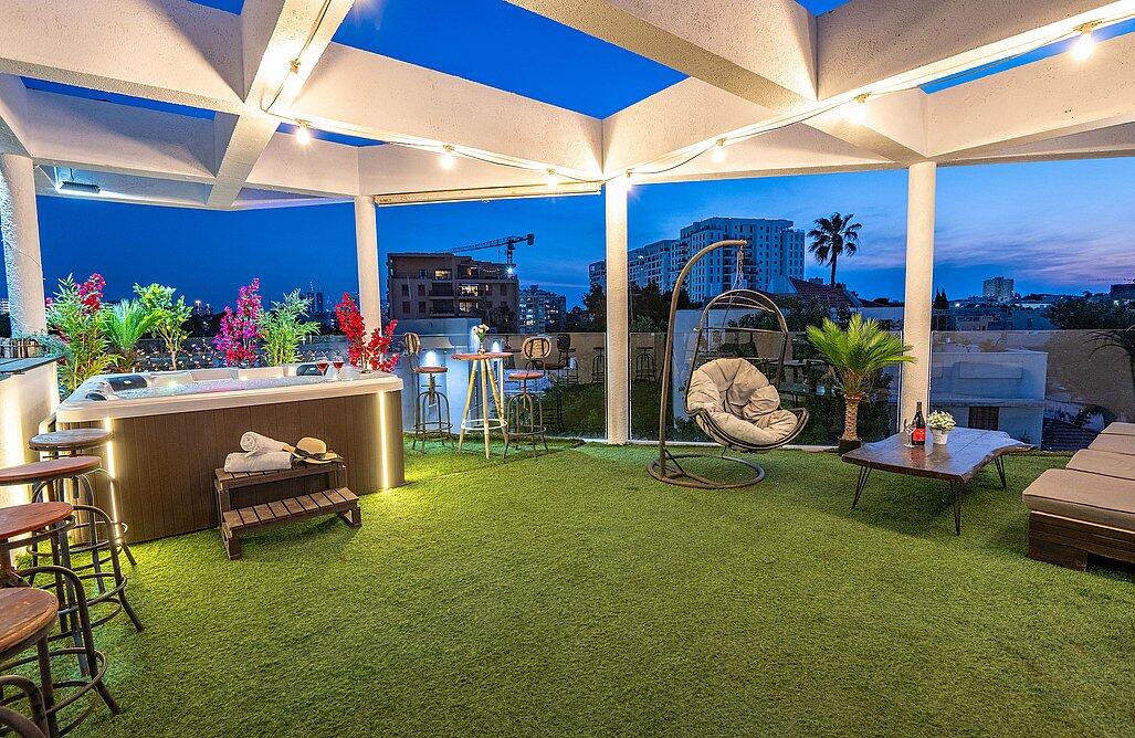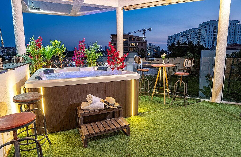 הפנטהאוז של תל אביב ממוקם במרכז תל אביב, ומעוצב כדי להעניק פינוק בכל מזג אוויר. בחורף תיהנו מג'קוזי ספא לוהט וסגירת חורף, ובקיץ מבריכת גג (בפנטהאוז) ומחום. המתחם כולל 6 חדרי שינה ומתאים לקבוצות. נגישות מלאה לכל מרכזי הקניות והבילוי. הזמינו נופש אורבני ברמה גבוהה.