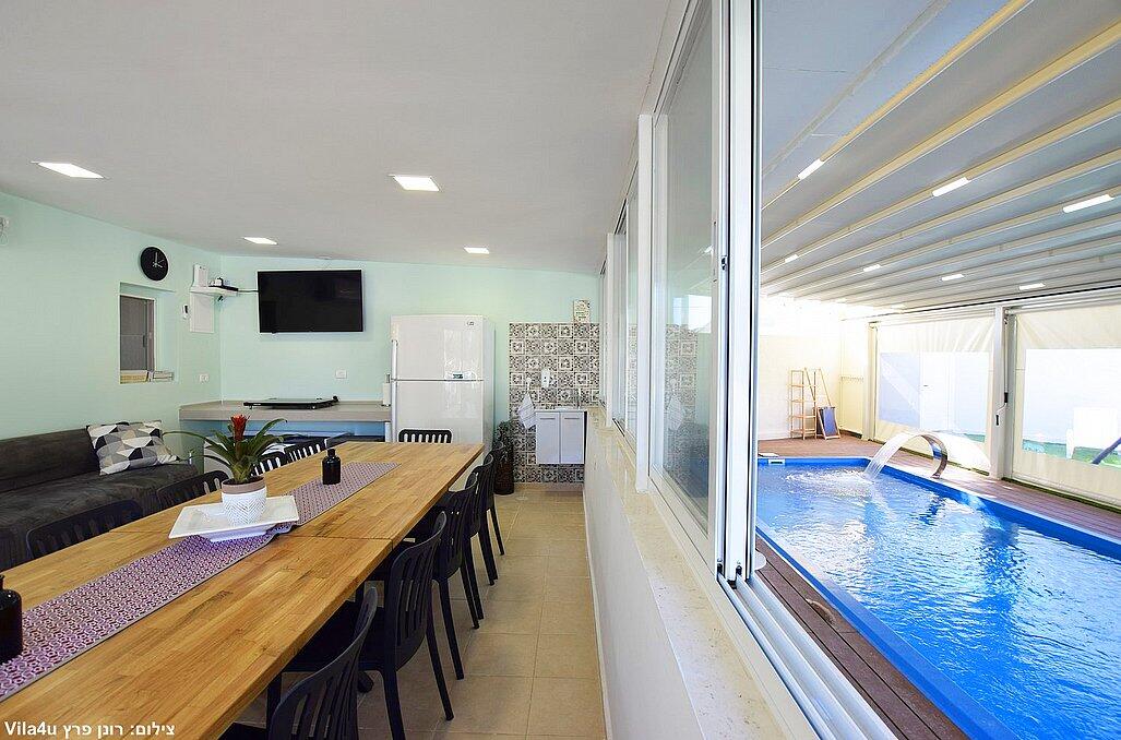גלו את וילה פנינת אליה - מתחם נופש יוקרתי המשלב עיצוב מרהיב עם חוויית אירוח מושלמת. הווילה המעוצבת כוללת 4 חדרי שינה מפנקים ובריכת שחייה מחוממת עם קירוי חשמלי חכם, המתאים עצמו לכל עונות השנה. החצר המרווחת מציעה פינת ברביקיו מקצועית ומגוון אטרקציות שיהפכו את שהותכם לבלתי נשכחת.