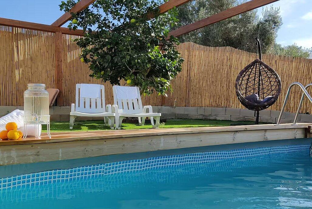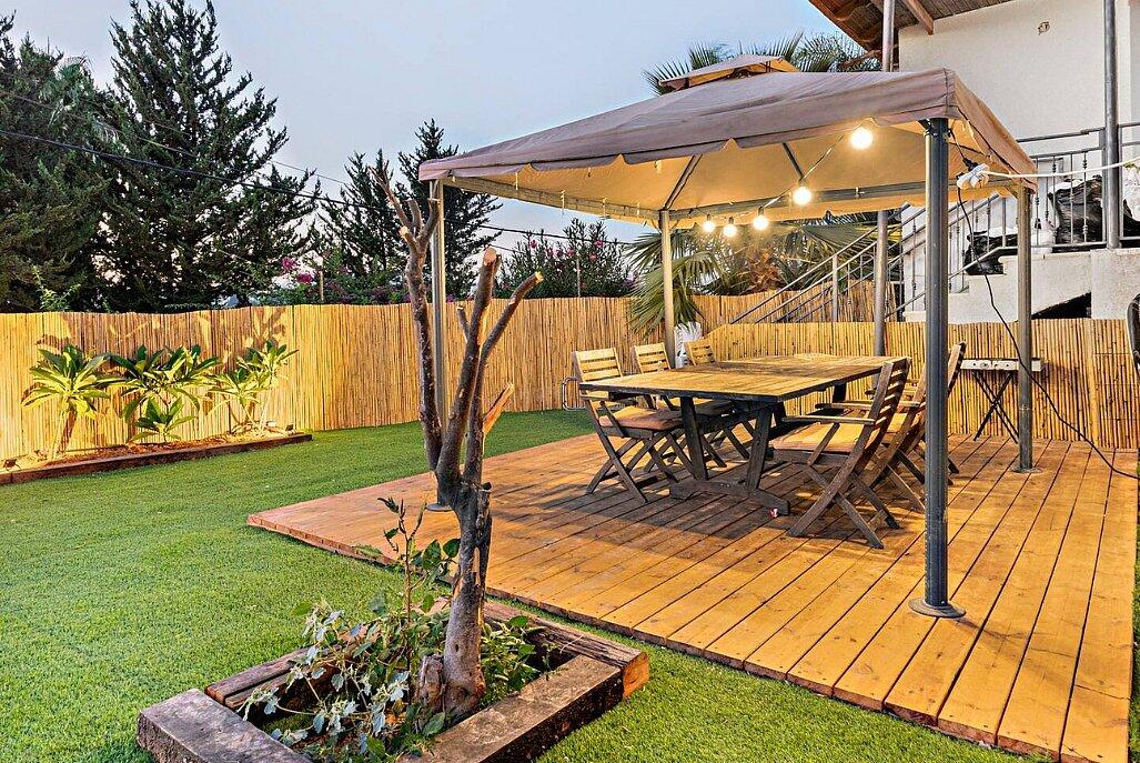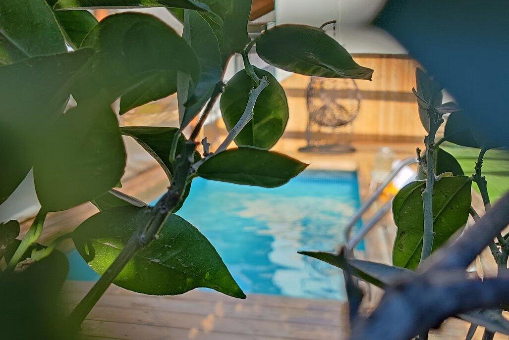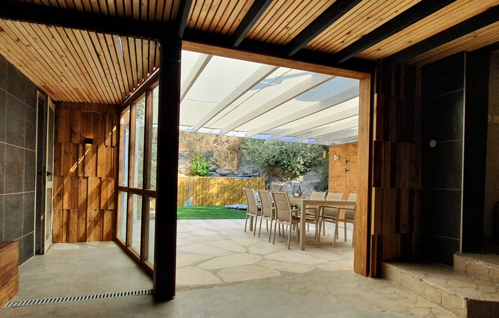 בריכה מחוממת, עצי פרי, טרמפולינה לילדים וחללים נעימים לנשימה.