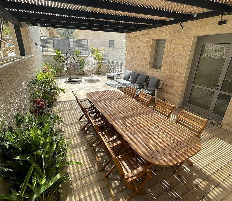 המתחם מציע חוויית אירוח מושלמת עם בריכה, חצר מרווחת הכוללת טרמפולינה, מפל מים דקורטיבי, פינת ברביקיו, ריהוט גן איכותי ומגוון משחקי שולחן. לנוחות האורחים, קיימות 4 חניות פרטיות צמודות.