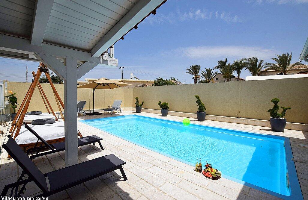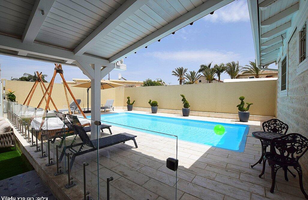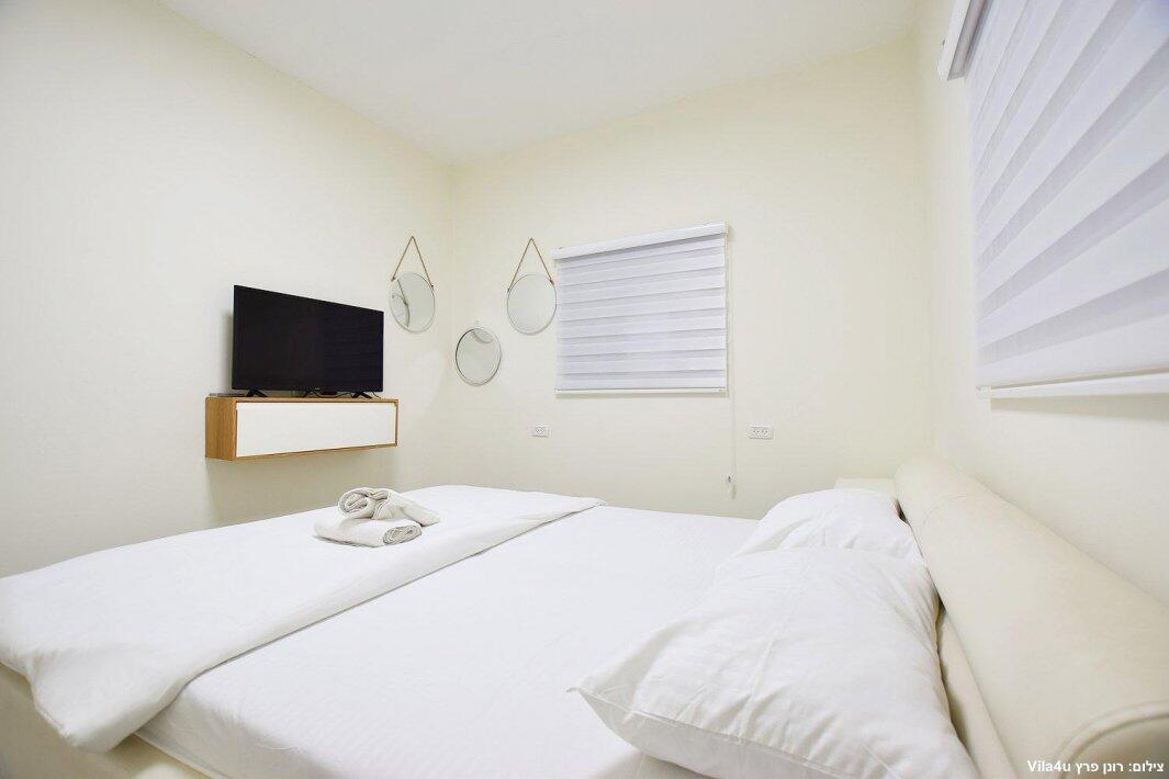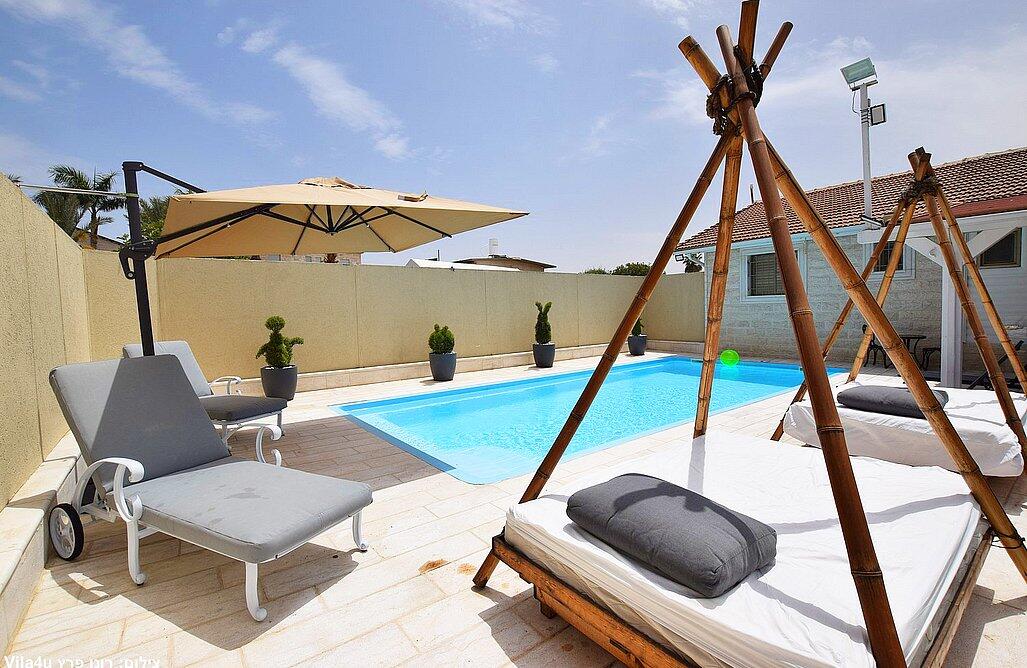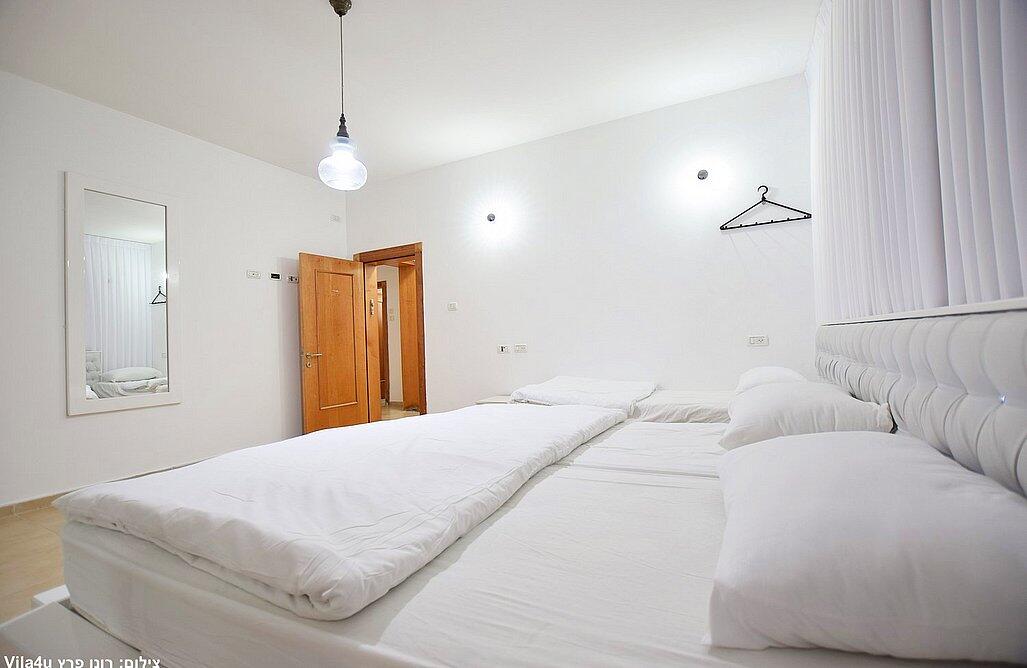 יהלום בלבן בוטיק - הווילה השלישית, מציעה אירוח אינטימי יותר עם 4 חדרי שינה זוגיים, בריכת זרמים משולבת עם ג'קוזי, מטבח מאובזר, סלון מעוצב, מדשאות מטופחות, פינת מנגל ומשחקי שולחן. הווילה מתאימה ל-15 אורחים.