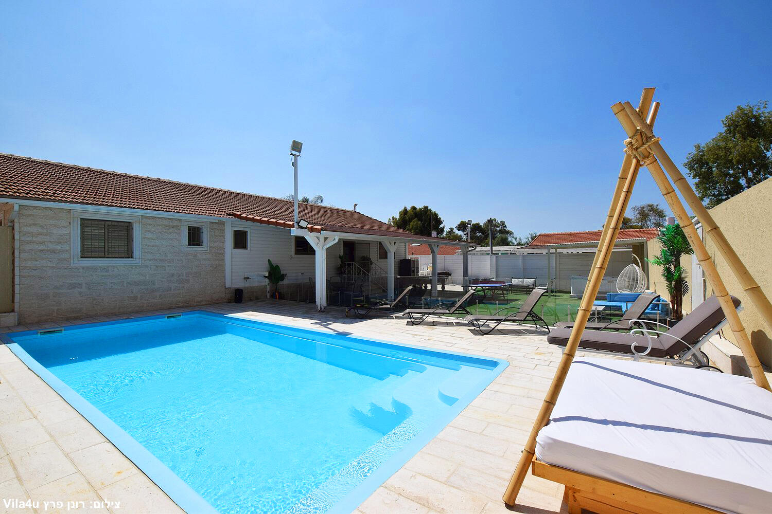 בואו לגלות את וילה יהלום בלבן - מתחם נופש מפואר במושב תירוש. המתחם המרכזי מציע 6 חדרי שינה מרווחים, שני מטבחים מאובזרים במלואם, בריכת שחייה מחוממת ומקורה, ג'קוזי ספא מפנק, מדשאות מטופחות ופינות ברביקיו מקצועיות.