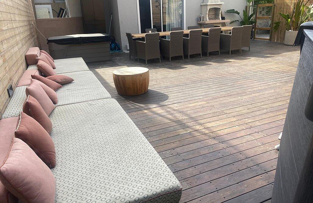 נופש עירוני שלא תרצו לפספס – הירקון 293 במרכז תל אביב עם 5 חדרים, בריכה, פינות ישיבה, אזור גריל ואווירה של חו"ל. מתאים לעד 10 אורחים. צרו קשר עכשיו. אידיאלי לחופשה זוגית, משפחתית או אירוע מיוחד בלב העיר. הזמינו עוד היום מקום המתחם הכי מבוקש בתל אביב