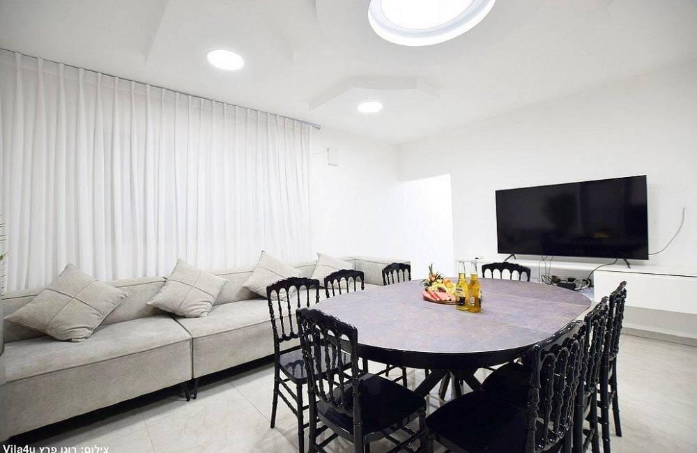 נופש ברמה אחרת מחכה לכם ב"אחוזת יהלום בלבן". וילה בוטיק עם עיצוב מוקפד, נוף פתוח ופרטיות מלאה. 5 חדרי שינה, סלון מפואר, מטבח וחצר חלומית. בריכה, מנגל, פינג פונג – כל מה שצריך לחופשה. מיועד למשפחות, קבוצות והציבור הדתי. מיקום מושלם במושב תירוש